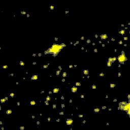 Compuesto anual de imágenes nocturnas de Andalucía generado a partir de imágenes del satélite DMSP-F14, captadas por el sensor OLS. Corregido geométricamente, remuestreado a 100m de resolución. Año 1999.