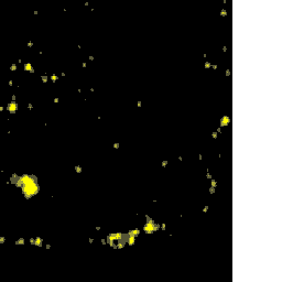 Compuesto anual de imágenes nocturnas de Andalucía generado a partir de imágenes del satélite DMSP-F10, captadas por el sensor OLS. Corregido geométricamente, remuestreado a 100m de resolución. Año 1993.