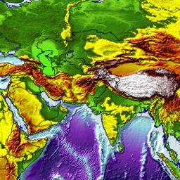 GTOPO30 is a global digital elevation model (DEM) resulting from a collaborative effort led by the staff at the U.S. Geological Survey's EROS Data Center in Sioux Falls, South Dakota. Elevations in GTOPO30 are regularly spaced at 30-arc seconds (approximately 1 kilometer). GTOPO30 was developed to meet the needs of the geospatial data user community for regional and continental scale topographic data.