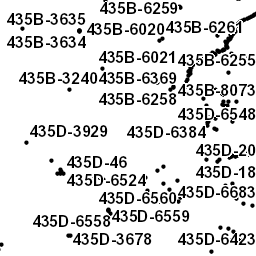Bohrungen mit Angabe der spezifischen Entzugsleistung in Watt pro Meter
