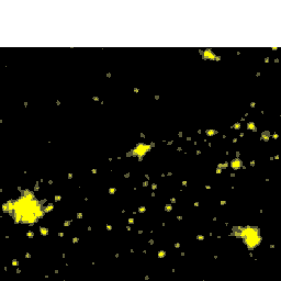 Compuesto anual de imágenes nocturnas de Andalucía generado a partir de imágenes del satélite DMSP-F12, captadas por el sensor OLS. Corregido geométricamente, remuestreado a 100m de resolución. Año 1995.