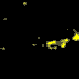 Compuesto anual de imágenes nocturnas de Andalucía generado a partir de imágenes del satélite DMSP-F12, captadas por el sensor OLS. Corregido geométricamente, remuestreado a 100m de resolución. Año 1994.
