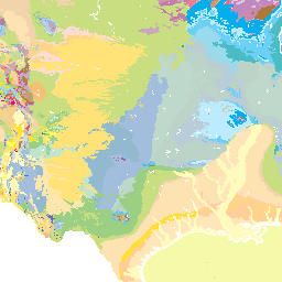 portrayal in which units are categorized according to the original map units defined in Reed et al. (2005). The color scheme has been adopted from that provided by Garrity and Soller (2009) to make it compatible with simple WMS service by removing the overlay patterns and adjusting colors slightly to get sufficient distinction between units. An SLD specifying the symbolization for this layer is at http://repository.azgs.az.gov/resources/slds/xml/LithostratigraphyGMNAMapUnit.sld. This legend assigns colors based on the unit abbreviations (simplied slightly) from Reed et al, which are in the GenericSymbolizer field in the data for the layer, so this sld is quite specific to the data for this layer.