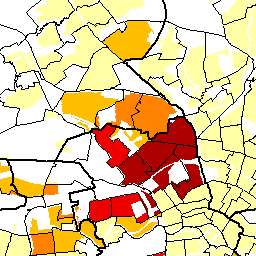Personen mit türkischer Staatsbürgerschaft in Prozent der Einwohnerinnen und Einwohner 2007 auf Ebene der Verkehrszellen (E 8)(Monitoring Soziale Stadtentwicklung 2008)