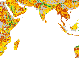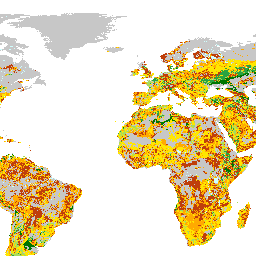 The GAEZ (Global Agro-Ecological Zones) land resources database allows characterization of various regions according to the prevailing climate, soil and terrain constraints. Based on this, a constraint classification has been formulated and has been applied to each gridcell of the database
