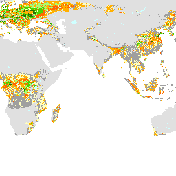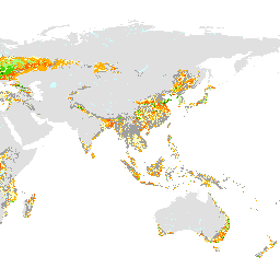Suitability of global land area for rainfed production of sugar crops - intermediate level of inputs (Suitability of global land area for rainfed production of sugar crops - intermediate level of inputs)
