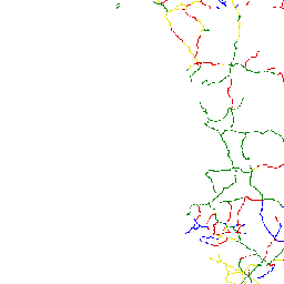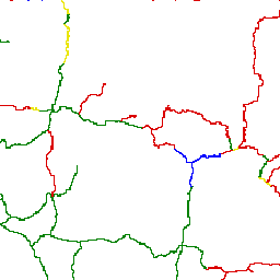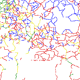 Road network in Africa classified according to their accompanying road type classification system. The cost grid represents the time cost and it is assumed that the time required to travel from one cell to another in absence of main roads is 5 times longer than the time needed on the main road. Road network was derived from ArcWorld (ESRI, 1992).