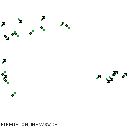 Zeigt grafisch an, ob der Wasserstand einer Messstation gerade absteigende, ansteigende oder gleichbleibende Tendenz hat.