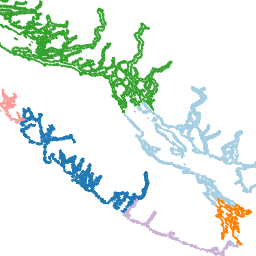 This data represents the location of coastal British Columbia marine kayaking routes.
