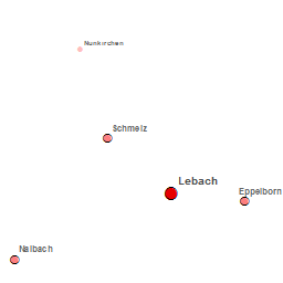 Stark generalisierte punkthafte Darstellung der Zentralen Orte (Oberzentrum, Mittelzentrum, Grundzentrum) im Rahmen des Landesentwicklungsplans Siedlung 2006.