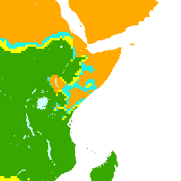 The GAEZ (Global Agro-Ecological Zones) land resources database allows characterization of various regions according to the prevailing climate, soil and terrain constraints. Based on this, a constraint classification has been formulated and has been applied to each gridcell of the database