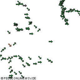 Zeigt grafisch an, ob der Wasserstand einer Messstation gerade absteigende, ansteigende oder gleichbleibende Tendenz hat.