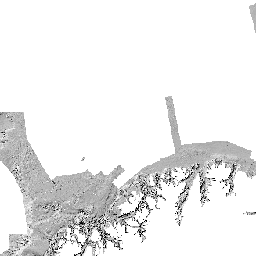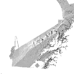 Svarthvit skyggerelieffkart basert på 10m dybdegrid. Topografien er belyst fra NV (315 grader) og med solhøyde på 45 grader over horisonten.